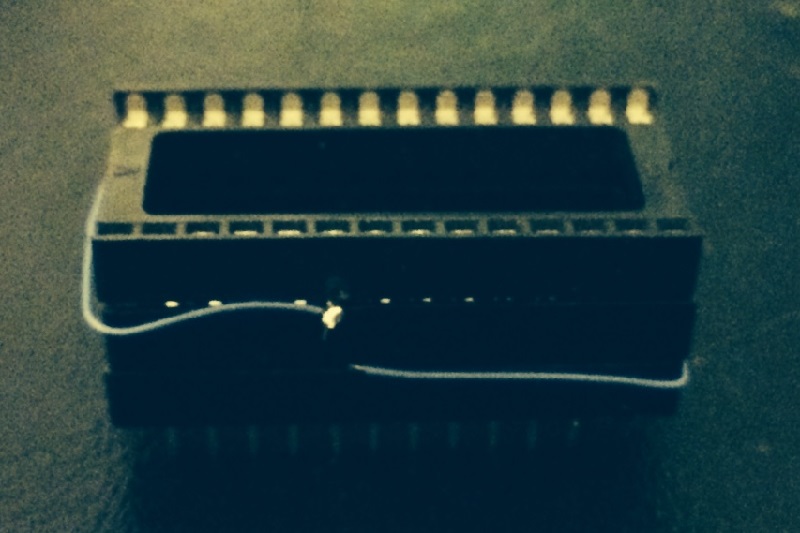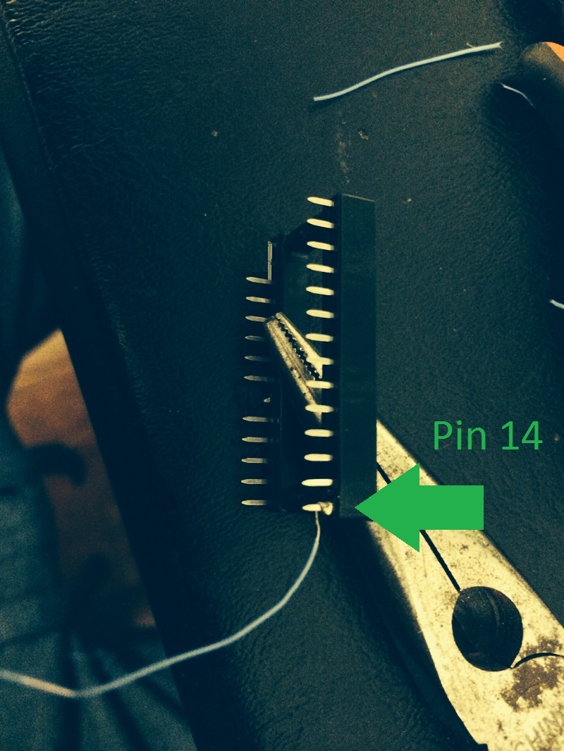 - using a very small piece of insulted jumper wire, strip an edge and wrap/solder on pin #14 of the 24 pin socket WITHOUT bending the pin out.